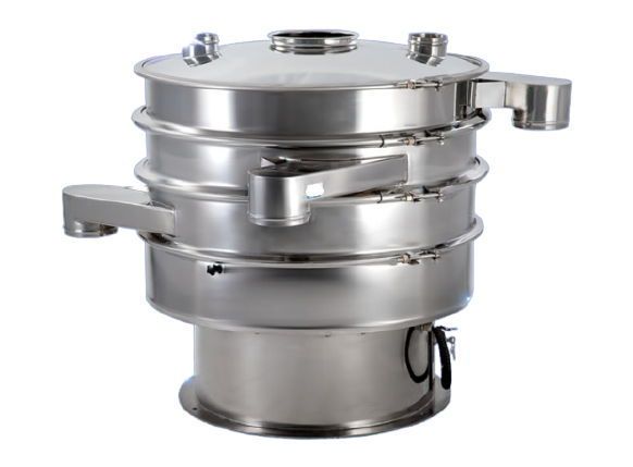 圓形振動篩是一種高精度細粉篩分設(shè)備,其噪音低、效率高,快速換網(wǎng)需3-5分鐘,全封閉結(jié)構(gòu),適用于粒、粉、粘液等物料的篩分過濾。圓形振動篩是由直立式電機作為激振源,電機上、下兩端安裝有偏心重錘,將電機的旋轉(zhuǎn)運動轉(zhuǎn)變?yōu)樗健⒋怪薄A斜的三次元運動,再把這個運動傳遞給篩面。調(diào)節(jié)上、下兩端的相位角,可以改變物料在篩面上的運動軌跡。